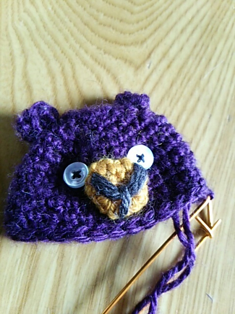 流石にこのサイズだと毛糸用の綴じ針が通らないので、普通の針で普通の黒い木綿糸で縫い付けました。