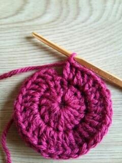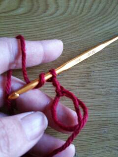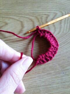 その立ち上がりの目も入れて全部で16目の長編みを編んで行きます。