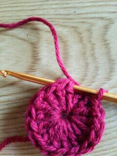で、近いうちに編みぐるみの実演をやる。と、げんげん殿に約束したのでそれの予習って事で円形に編む編み方を。