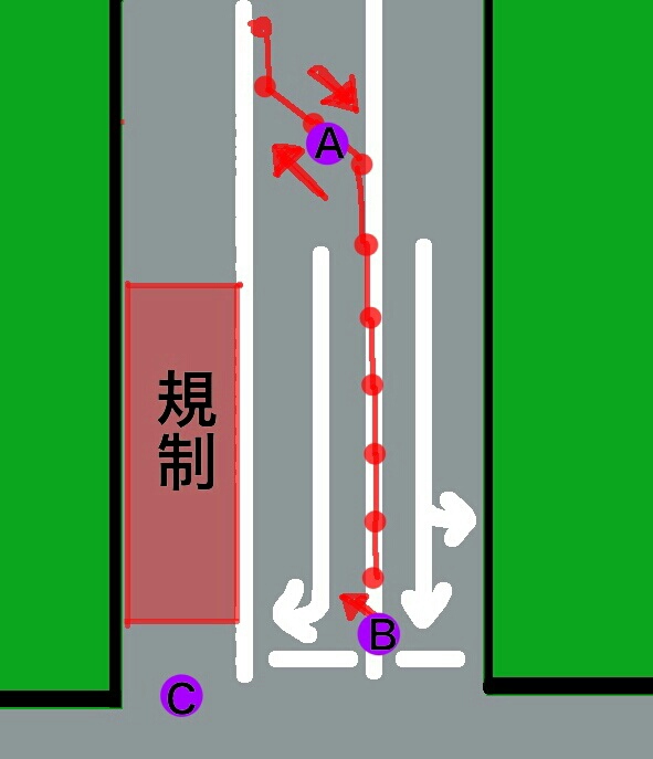 感心な事に手羽君側(A)からの逆走は皆無だったにも関わらず、Gさん(B)からの車がことごとく逆走。