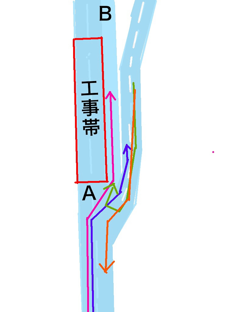 AからBの区間で一般車が鉢合わせしたり、工事車両が一般車に接触とか